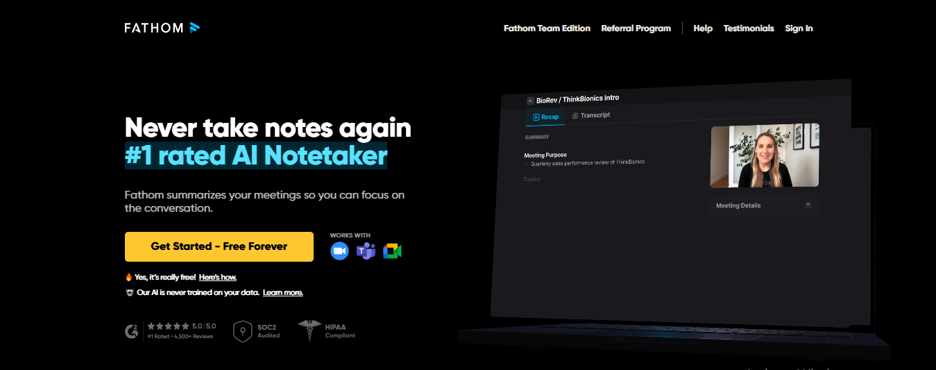 Fathom, a newer entrant to the AI meeting tools market, was designed originally to simplify note-taking for Zoom meetings. Now it extends the support for Google Meet and Microsoft Teams.